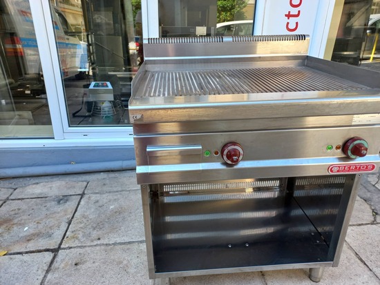 Επαγγελματικό πλατώ ψησίματος ηλεκτρικό της εταιρείας Berto's, με ισχύ 9,6 Διαθέτει 1 πλάκα, ραβδωτή έτσι ώστε να μπορείτε να ψήσετε σχεδόν τα πάντα Λειτουργεί με ηλεκτρικό αυξάνοντας έτσι την αποδοτικότητα και μειώνοντας την κατανάλωση και το χρόνο προθέρμανσης. Διαθέτει βάση με αποθηκευτικό χώρο για καλύτερη οργάνωση της κουζίνας. Έχει 2 ζώνες ψησίματος