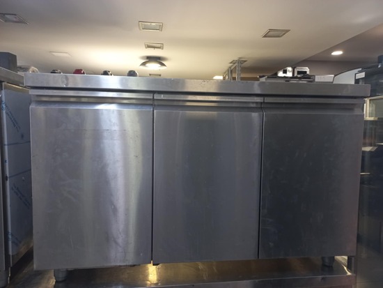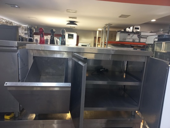 Ερμάριο με ανοιγόμενες πόρτες και ενδιάμεσο ράφι, κατασκευασμένο από AISI 304 με ρυθμιζόμενα πόδια.