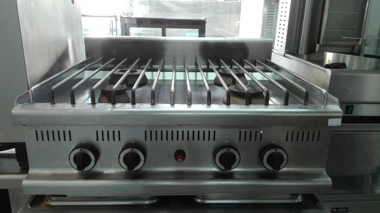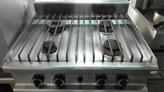 Διαθέτει ανοξείδωτη σχάρα επάνω από τις εστίες, διευκολύνοντας έτσι την εύκολη μετακίνηση μεγάλων σκευών από τη μία εστία στην άλλη, καθώς και τη δυνατότητα χρήσης μικρού ή μεγάλου σκεύους.