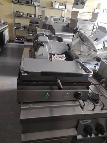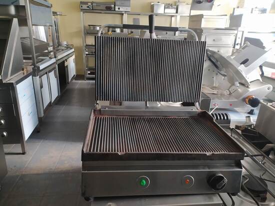 Τοστιέρα διπλή με ραβδωτή επιφάνεια, ενδεικτική λυχνία θερμοκρασίας, και αποσπώμενο λιποσυλλέκτη.