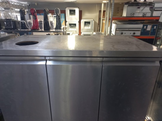 Ερμάριο με ανοιγόμενες πόρτες και ενδιάμεσο ράφι, κατασκευασμένο από AISI 304 με ρυθμιζόμενα πόδια.