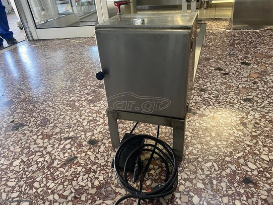 Mηχάνημα για την εύκολη περιτύλιξη κοκορετσιού. Το μηχάνημα είναι κατασκευασμένο εξ ολοκλήρου από ανοξείδωτο χάλυβα με ιδιαίτερη προσοχή στον σχεδιασμό για να αποφεύγονται τα κρυφά σημεία και έτσι να γίνεται εύκολος καθαρισμός.