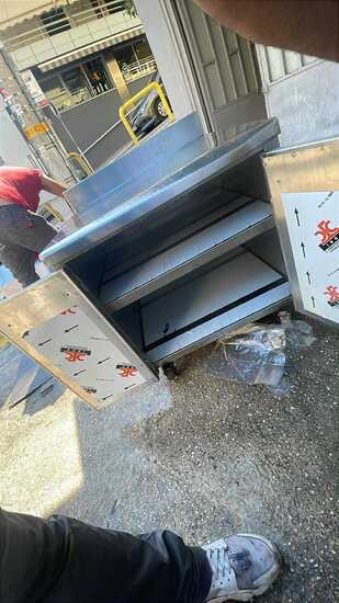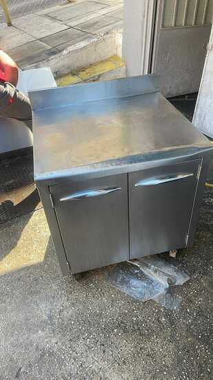 Ερμάριο με ανοιγόμενες πόρτες και ενδιάμεσο ράφι, κατασκευασμένο από AISI 304 με ρυθμιζόμενα πόδια.